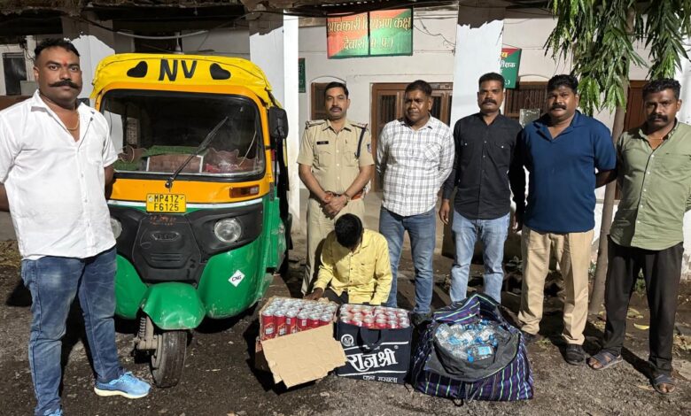 *एक ऑटो से 200 पाव देशी मदिरा प्लेन एवं 96 केन विदेशी मदिरा बियर जप्त*