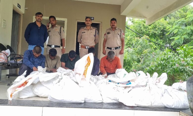 थाना टोंकखुर्द पर अपराध क्रमांक 345/2025 धारा 303(2) बी.एन.एस. का पंजीबध्द कर विवेचना मे लिया गया था। दौराने विवेचना आरोपी नरेंद्र पिता चौहानिया हाडा उम्र 37 साल निवासी सामगी,पंकज पिता रमेश सिसोदिया उम्र 21 साल निवासी सामगी ,राजमल पिता रामेश्वर हाडा उम्र 40 साल निवासी सामगी, रविंद्र पिता दुलेसिंह हाडा उम्र 26 साल निवासी इलासखेड़ी थाना पीपलरवा ,कल्लू उर्फ कल्ला पिता मनोहर झांजा उम्र 22 साल निवासी पांदा को गिरफ्तार किया गया तथा चोरी गये 23 बोनी कट्टे बरामद कर आरोपियो को माननीय न्यायालय टोंकखुर्द के समक्ष पेश किया गया जहां से आरोपीतो को जिला जेल देवास भेजा गया ।