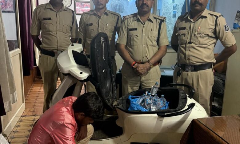 एक स्कूटर से 50 पाव देशी मदिरा के परिवहन करते हुए एक व्यक्ति को गिरफ़्तार किया गया