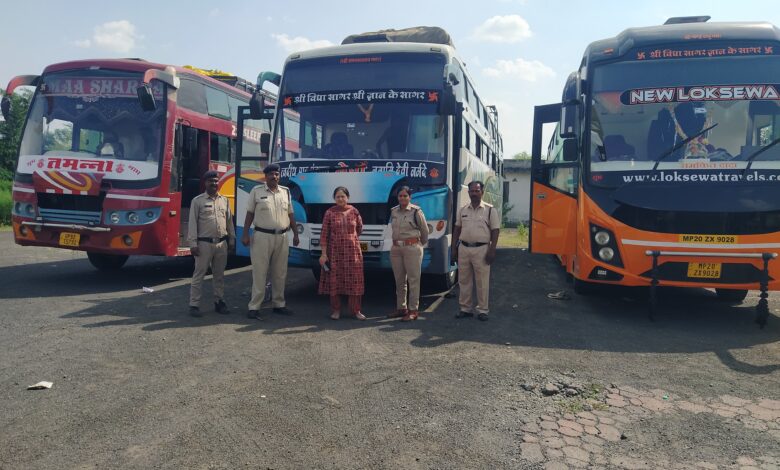 देवास -माननीय परिवहन आयुक्त महोदय, मध्यप्रदेश एवं माननीय कलेक्टर महोदय के निर्देशानुसार आरटीओ अधिकारी श्रीमती निशा चौहान एवं जांच दल प्रभारी श्रीमती मीनाक्षी गोखले के नेतृत्व में आरटीओ जांच दल द्वारा चलाए जा रहे चेकिंग अभियान के अंतर्गत आज दिनांक को भोपाल देवास मार्ग पर अल सुबह 5 बजे से ऑल इंडिया टूरिस्ट परमिट स्लीपर बसों एवं स्कूल बसों की जांच की गई, जो दोपहर 12 बजे तक चली, जांच के दौरान लंबी दूरी की चलने वाली स्लीपर बसों के परमिट, यात्री सूची, अग्निशमन यंत्र, मेडिकल बॉक्स, यात्रियों की संख्या, बीमा, फिटनेस, पीयूसी, वर्दी की जांच की गई, साथ ही यह भी देख गया कि इन लंबी दूरी की बसों में 2 चालक उपस्थित है या नहीं,